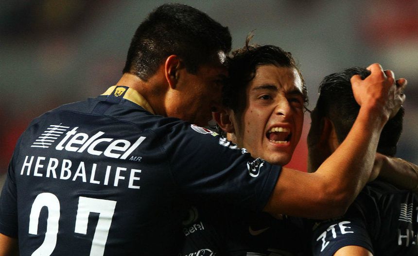 Jugadores de Pumas celebran anotación contra Necaxa | IMAGO7