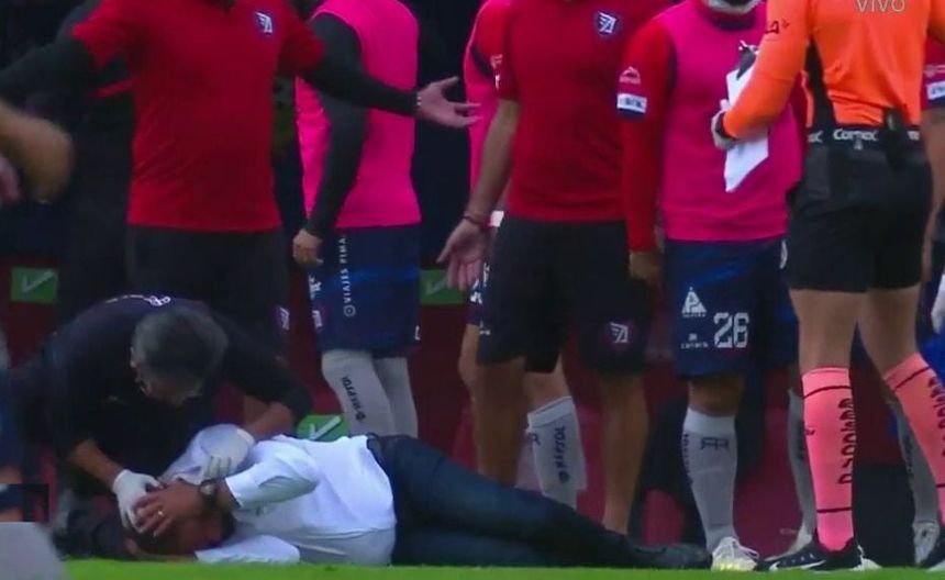 De inmediato, el estratega se tiró al pasto y fue atendido por su cuerpo médico sin que el incidente pasara a mayores.