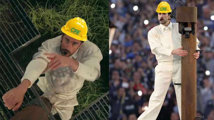 La escena fue tomada con humor por miles de usuarios, incluida la CFE, que aprovechó varias imágenes del show —especialmente aquellas donde el artista aparece en las torres de luz— para colocarle digitalmente un casco amarillo con las siglas de la empresa.