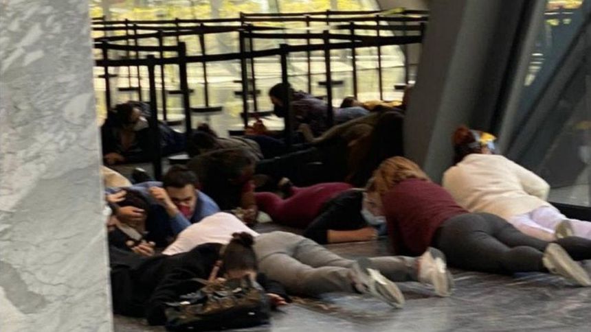 Personas en el suelo tras escuchar los balazos | TWITTER @c4jimenez