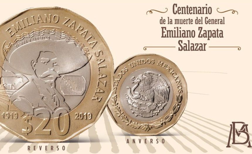 "El Banco de México informa que puso en circulación una moneda de 20 pesos, que conmemora el Centenario de la muerte del general Emiliano Zapata Salazar. Esta es la segunda moneda de la denominación de 20 pesos con diseño dodecagonal y que tiene imagen latente y micro texto como elementos de seguridad", se leyó en el comunicado del Banxico.