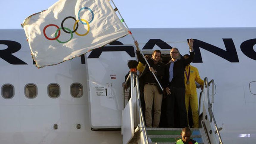 La bandera olímpica llegó el lunes a Río de Janeiro, ciudad sede de las Olimpiadas de verano de 2016.