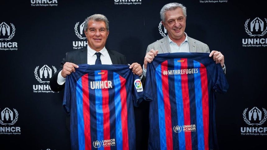 El logo de la Agencia de las Naciones Unidas para los Refugiados (ACNUR) aparecerá en la parte trasera de la camiseta del Barcelona, justo debajo del dorsal donde se ubicaba el símbolo de Unicef, durante las cuatro próximas temporadas, anunció hoy el presidente del Barcelona, Joan Laporta junto con el alto comisionado de la ONU para los refugiados, Fiilippo Grandi.
