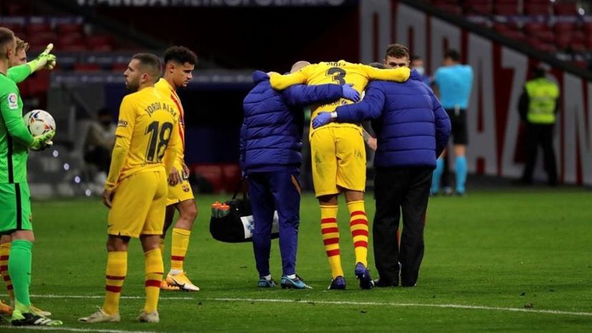 Piqué tuvo que abandonar el campo al minuto 60 después de recibir un fuerte golpe en la rodilla tras un choque con Ángel Correa del Atlético. .
