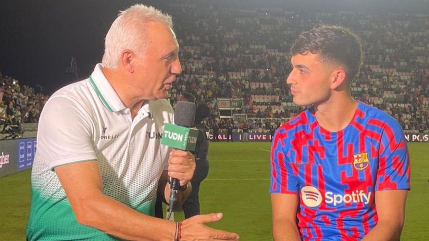 El exatacante de Bulgaria le otorgó una playera con el número '8' a Pedri al término de una entrevista, posteriormente le dio la mano y terminaron abrazándose.