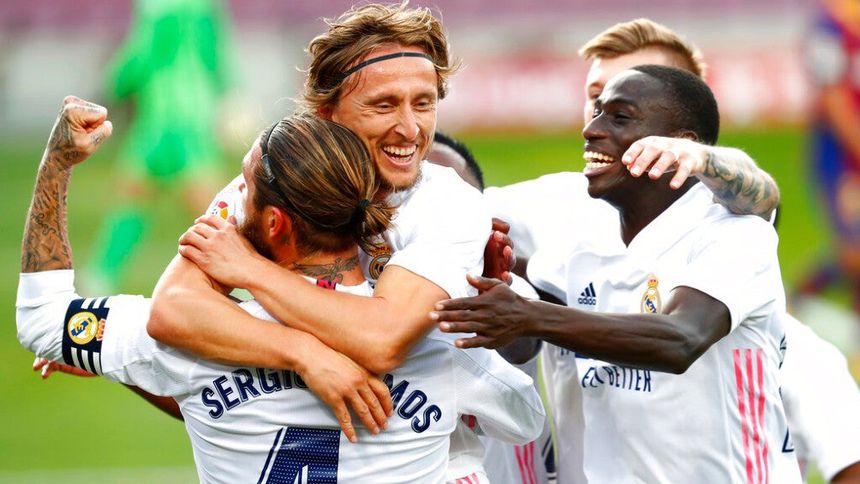 Jugadores del Madrid celebran gol vs Barcelona | AP