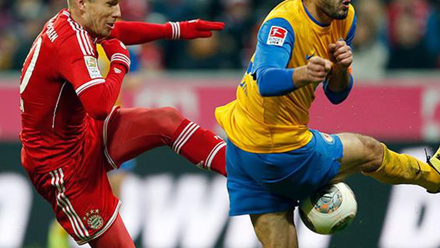 Con doblete de Arjen Robben, el Bayern Munich se mantiene invicto en la Bundesliga al vencer 2-0 al colero Braunschweig, al tiempo de llegar 39 partidos sin perder, mientras que Borussia Dortmund necesitó de dos goles en las postrimerías para superar a Mainz.