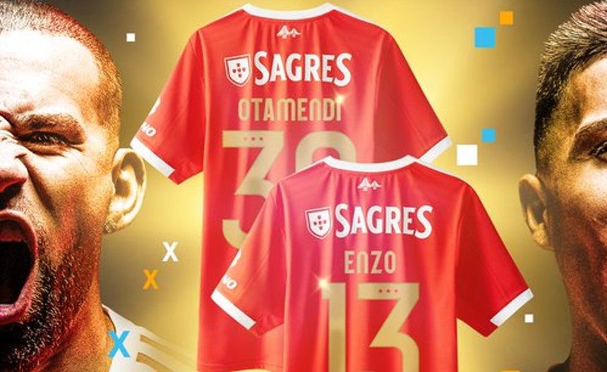 A través de sus redes sociales, el club portugués dio a conocer la misma jersey que luce habitualmente pero con los nombres y números de Enzo y Otamendi respectivamente en color dorado en lugar de blanco.