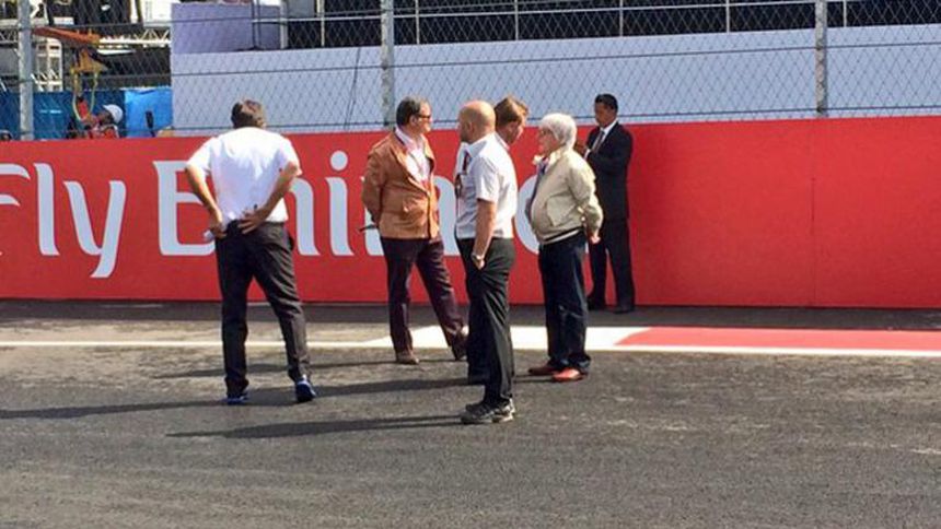 El directivo de la F1 recorrió el circuito acompañado de otros dirigentes mientras los oficiales de pista realizaban prácticas. Además algunos equipos ya estaban trabajando en los monoplazas de sus pilotos.