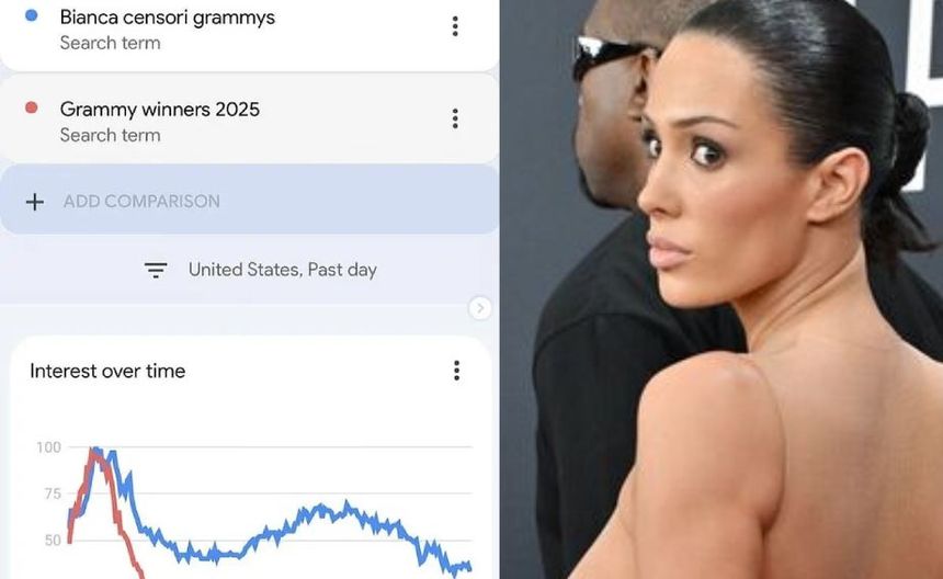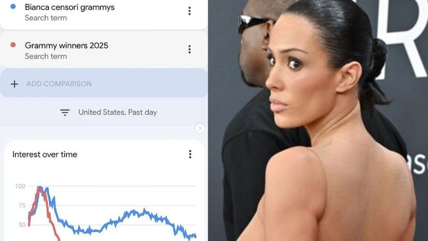 El rapero publicó resultados de búsqueda en Google sobre Censori, revelando que su esposa era el nombre más buscado en la noche de la entrega de premios. Kanye compartió un vídeo de su esposa en sus historias de Instagram y escribió: "La persona más buscada en Google en la tierra".