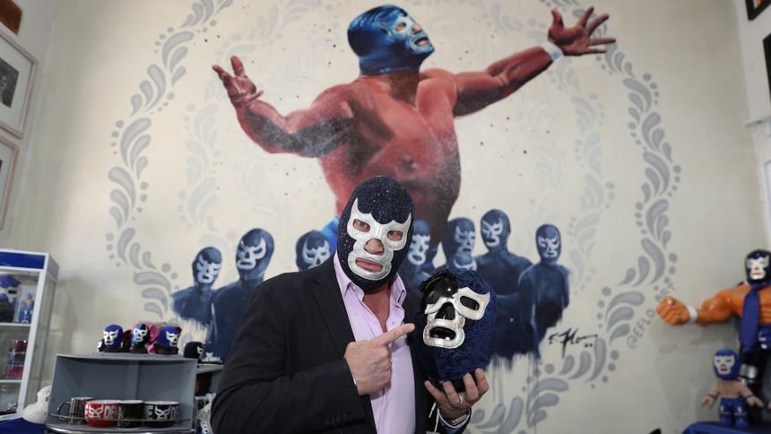 Blue Demon Jr, al igual que miles de personas, tuvo que reinventarse durante la pandemia y ahora, a tres años de distancia, celebra el primer aniversario de su galería de arte, proyecto que consolidó en conjunto con su esposa.