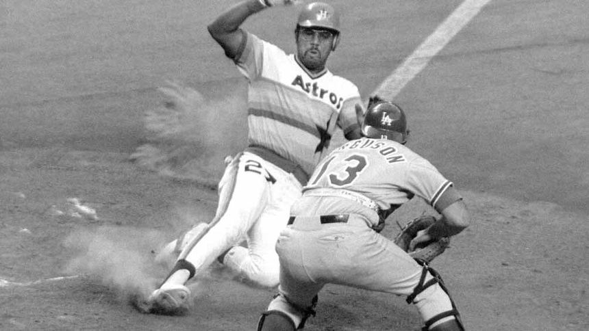 Bob Watson, primera base de los Astros de Houston, se barre en el plato | AP