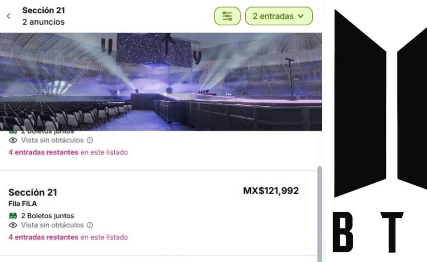 La locura por los boletos para los conciertos que ofrecerá BTS en México se está saliendo de control. Luego de que comenzara la preventa y las entradas se agotaran en cuestión de minutos, páginas de reventa ya ofrecen boletos con precios superiores a los 100 mil pesos.