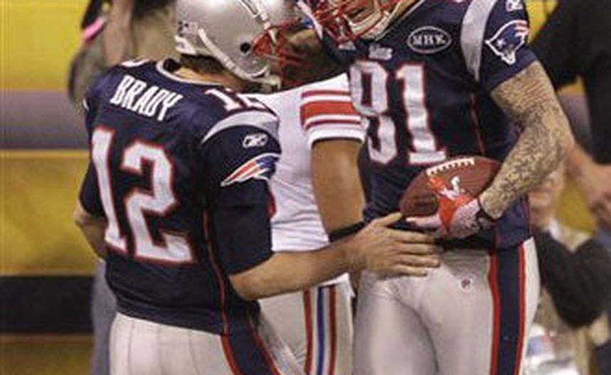 El quarterback de los Patriotas de Nueva Inglaterra consiguió su décimo sexto pase en un touchdown de 12 yardas a Aaron Hernández en la primera serie ofensiva de la segunda mitad del partido del domingo por el título de la NFL. Nueva Inglaterra sacó ventaja de 17-9 sobre Nueva York cuando restaban 11:20 en el tercer parcial.