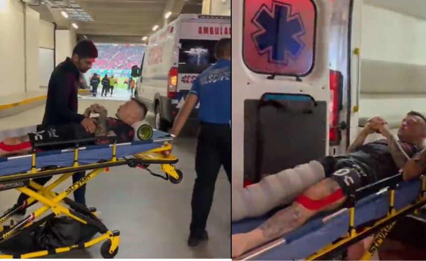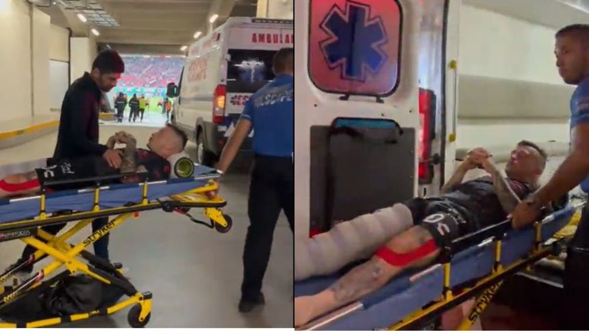 El jugador uruguayo tuvo que abandonar el partido en el carro de asistencia médica y fue llevado directamente al túnel del Estadio Akron, donde abordó una ambulancia con la pierna inmovilizada para ser llevado a un hospital y ser valorado.
