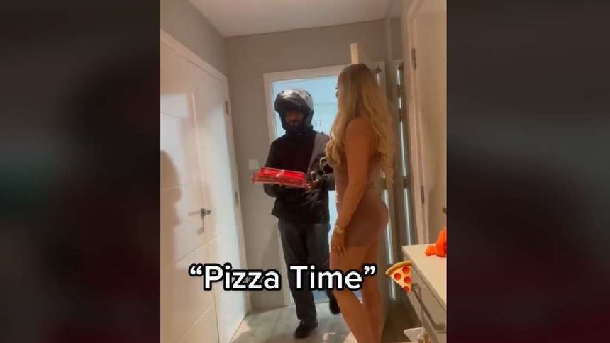 El video titulado ‘Pizza time’ dura apenas 27 segundos y fue subido a TikTok por la cuenta @qod.modelos, que aparentemente es de una agencia de modelos europea. En la grabación se observa cuando llega el repartidor con un par de pizzas, sin embargo, la sorpresa se la llevó cuando una mujer con un vestido entallado y con escote le abre la puerta, para luego pedirle que deje las cajas al interior del departamento.