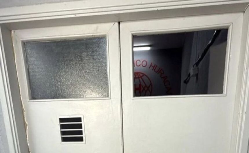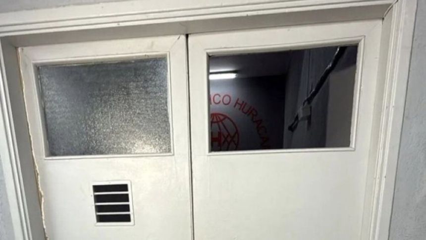 Imágenes compartidas después del encuentro, muestran una ventana rota de una de las puertas que da a los vestidores en el estadio de Huracán, vidrio que rompió Merentiel de camino al vestidor.
