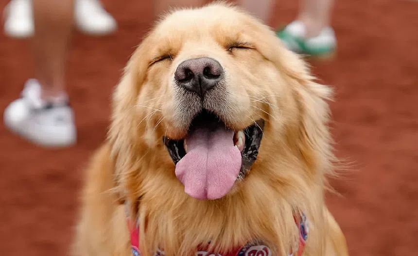 Bruce, el Golden Retriever que debutó con los Nationals como recoge bates en MLB