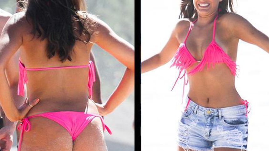 Con un bikini rosa, Bruna acaparó las miradas durante el rodaje, mientras que algunos medios especulan con una posible reconciliación con la estrella del club blaugrana.