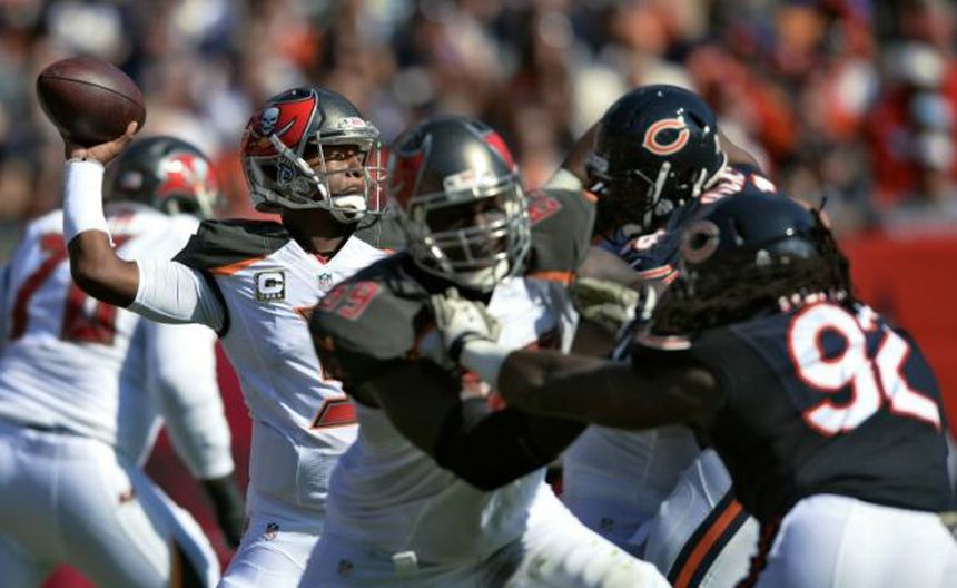 Winston lanzó pases de touchdown de 10 yardas a Cameron Brate y de 43 yardas a Freddie Martino, este último generado en una extraña jugada en la que el seleccionado número uno del draft del año pasado retrocedió 23 yardas hasta su propia zona de anotación antes de evitar un safety y completar un pase de 39 yardas con Mike Evans hasta la yarda 38 de Chicago.