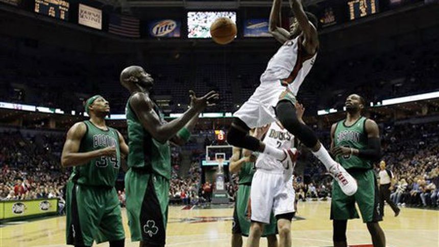 Larry Sanders anotó 18 puntos, recuperó 16 rebotes y bloqueó cinco tiros para que los Bucks de Milwaukee se recuperaran para arrebatarle el juego por 91-88 a los Celtics de Boston, que se habían ido adelante 17-0 en el partido del sábado por la noche.