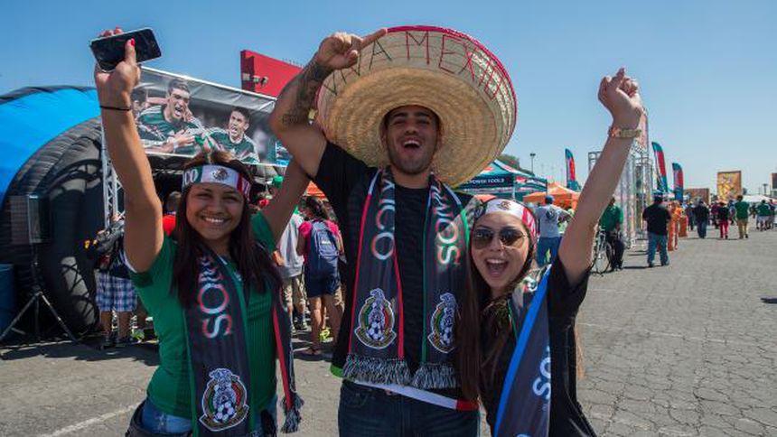 El intenso calor no fue impedimento para que cientos de aficionados gozaran del ambiente previo al inicio del encuentro entre México y Ecuador en las inmediaciones del Memorial Coliseum de Los Angeles.