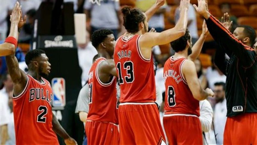 Joakim Noah aportó 13 puntos, Taj Gibson coló 12 y Marco Belinelli añadió 10 para la causa de Chicago, equipo responsable de romper la racha de 27 victorias seguidas del Heat durante la temporada regular.