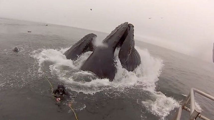 Buzo se salva de ser devorado por ballena