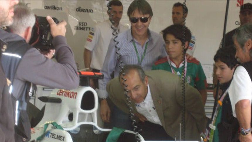 El presidente llegó a la pista texana por la mañana, donde fue recibido por Monisha Kaltenborn, directora de Sauber. Calderón saludó también a Emilio Botín, presidente del banco Santander, y a Carlos Slim Helú, dueño de Grupo Carso.