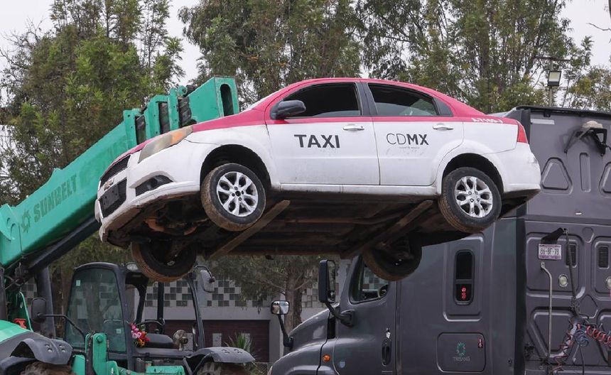 - Se traslada a Ecatepec, donde una máquina aprieta, comprime y convierte el taxi en metal reciclado.