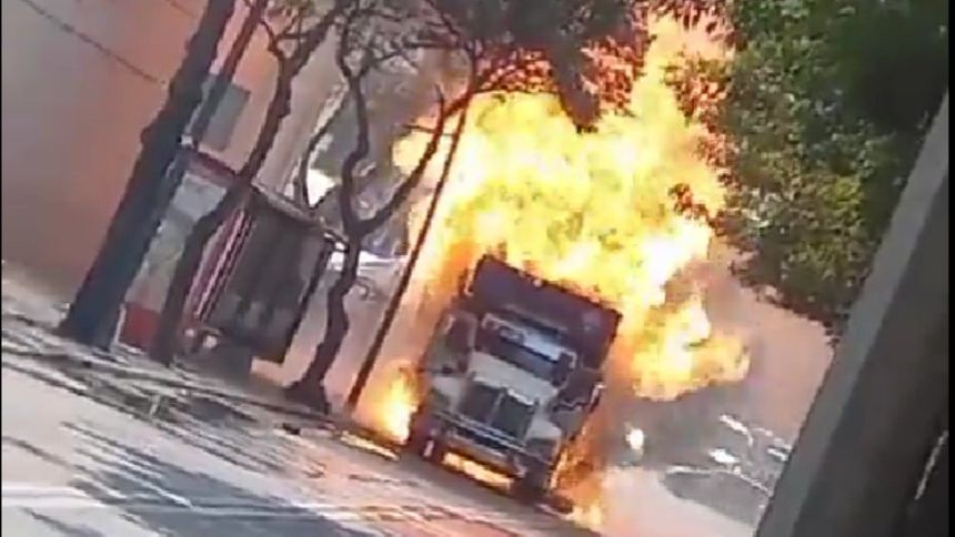 En redes sociales fue que comenzaron a circular fotos y videos del momento de las explosiones por los tanques de gas en el camión.