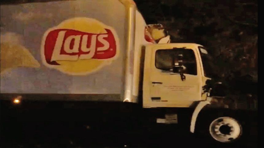 En la autopista interestatal 95, en Melbourne, Florida, un camión que transportaba papas fritas se estrelló con uno de cervezas, y el producto de ambos quedó esparcido por todo el asfalto.