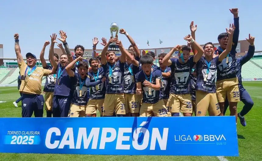 Pumas Sub 17 conquistó el título del torneo Clausura 2025 al imponerse por marcador global 2-1 a Santos Laguna. El empate sin goles en el duelo de vuelta, celebrado en el Estadio TSM de Torreón, selló la victoria universitaria tras la ventaja obtenida en el partido de Ida.