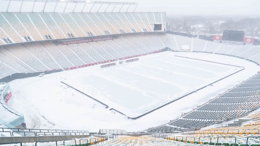 Desafortunadamente, para el Tricolor, las bajas temperaturas se mantienen durante este martes, día del partido y han dejado con una capa de nieve cubriendo la cancha del Commonwealth Stadium.