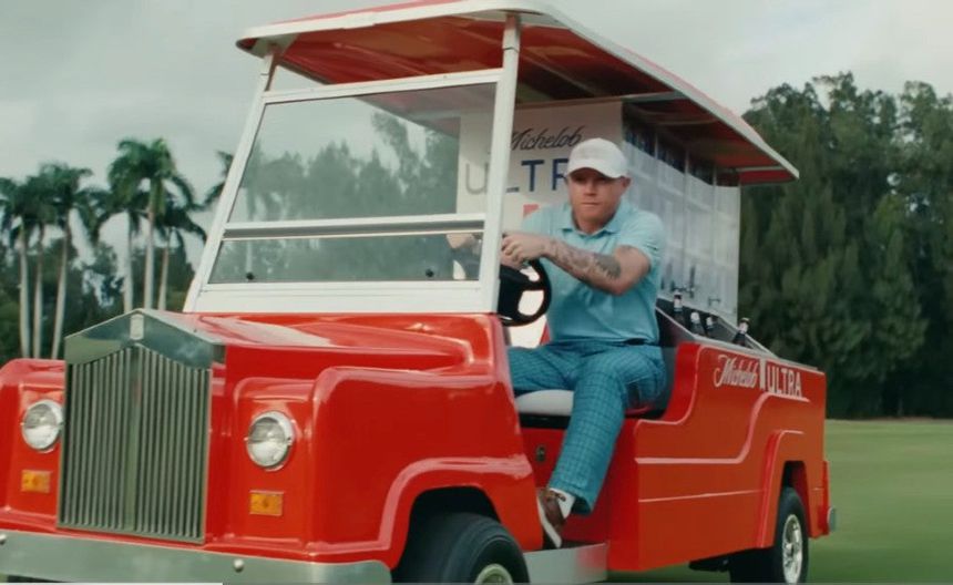 Canelo manejando un carrito de golf | CAPTURA YOUTUBE Michelob ULTRA