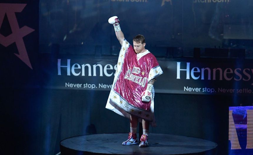 Llegó la hora pactada y el mexicano Saúl Álvarez salió con un short rojo, un gabán rosa y una playera por debajo con la leyenda “no boxing no life”, que se traduce como “no boxeo, no vida” para enfrentar a Dmitry Bivol en Las Vegas.