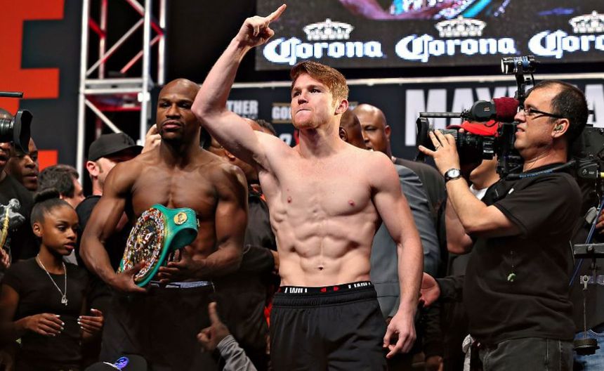 Saúl Álvarez y Mayweather durante el pesaje previo a su pelea | IMAGO7