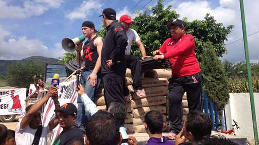 Luego de unos días de descanso tras su derrota contra Floyd Mayweather, Saúl Álvarez visitó uno de los 48 municipios del estado de Guerrero afectados por la tormenta ‘Manuel’, en compañía de su equipo de trabajo.