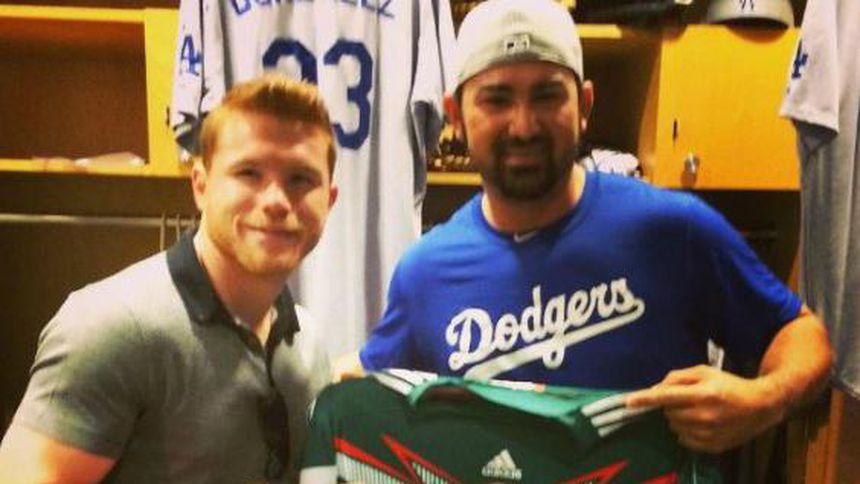 El boxeador mexicano, Saúl 'Canelo' Álvarez hizo este domingo una visita especial al beisbolista de los Dodgers de Los Ángeles, Adrián González, con quien posó con una camiseta de la Selección Mexicana de Futbol, en muestra de apoyo para el conjunto tricolor, que este lunes se juega su pase a los Octavos de Final de Brasil 2014.