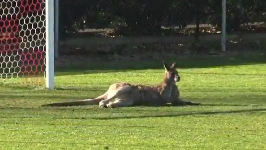 Canguro se metió al campo e interrumpió un juego de futbol