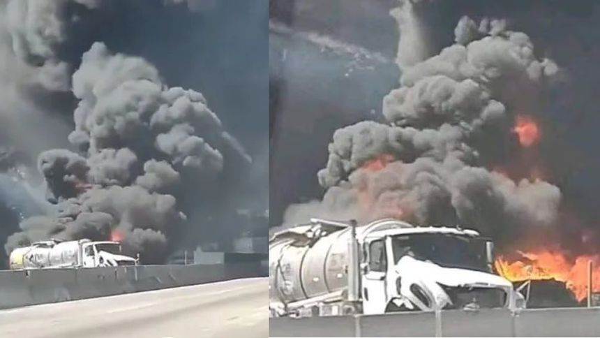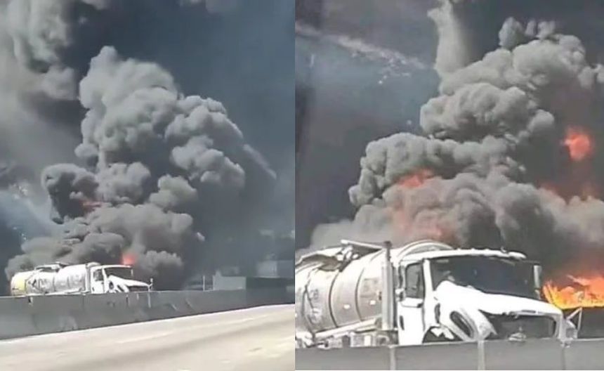 Una pipa se vio involucrada en una carambola que causó su explosión, por lo que la autopista México-Querétaro fue cerrada de manera total con dirección a la Ciudad de México (CDMX).