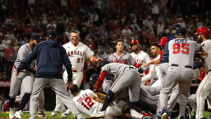 La situación se salió completamente de control en cuestión de segundos, convirtiéndose en una auténtica campal en pleno diamante de Anaheim.