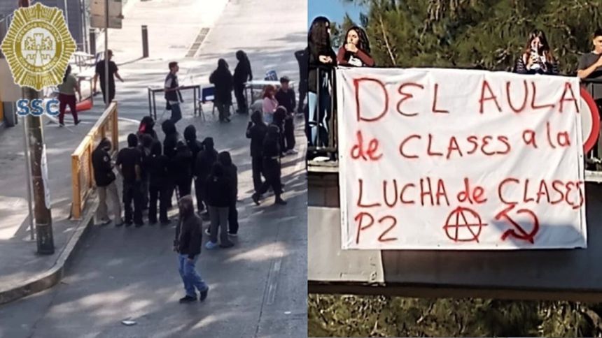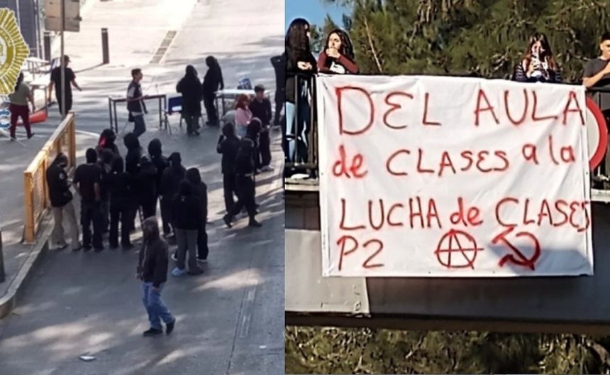 Aproximadamente 30 estudiantes, encapuchados la mayoría, resguardan el plantel.