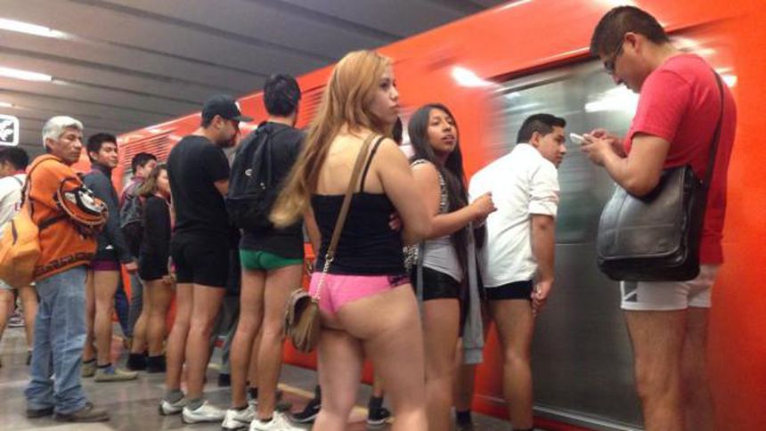 Este domingo se realizó en la Ciudad de México el Viaje en Metro sin pantalones' por quinto año consecutivo, que tiene como objetivo crear una escena fuera de lo convencional en la que miles de personas habrían olvidado ponerse la prenda.