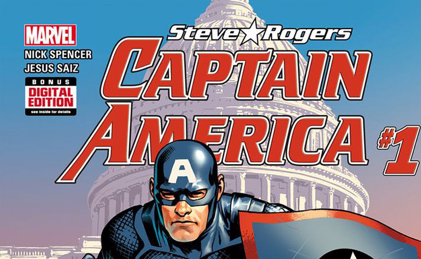 El aparente vuelco del héroe patriótico, que se mantuvo al margen durante meses, es el momento culminante de la edición No. 1 escrita por Nick Spencer con dibujos de Jesus Saiz. El editor Tom Brevoort quiere que los lectores sepan que no han recurrido a ninguno de los viejos trucos del cómic — un clon, un modelo que sirve de señuelo o un Steve Rogers de otra dimensión — para esta revelación.