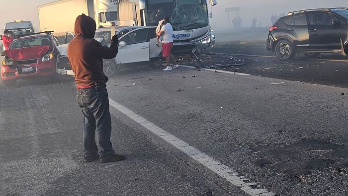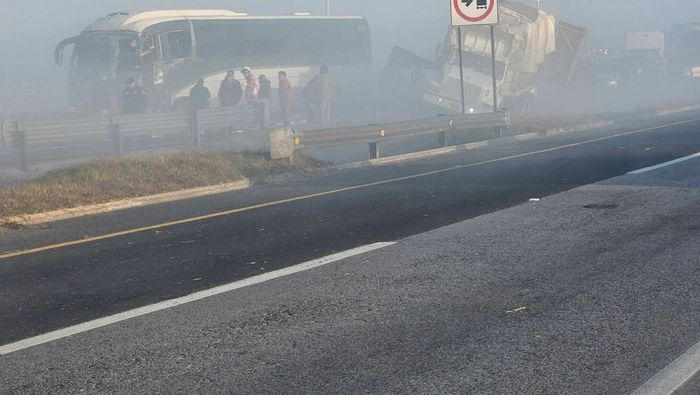 De acuerdo con los primeros reportes, el accidente ocurrió antes de las 8:00 horas cuando una densa neblina, combinada con humo por quema de pastizales, redujo drásticamente la visibilidad en la vía, lo que habría provocado que varios conductores no pudieran frenar a tiempo y se registraran colisiones sucesivas.