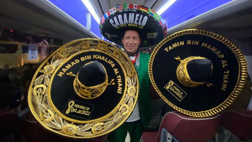"Son dos sombreros emblemáticos, con mucho cariño se los vine a traer porque verdaderamente se han portado bien generosos con los aficionados en este mundial, con esto te puedo decir que es mi tercera ocasión que el comité supremo de Qatar me invita a Qatar con todos los gastos pagados, avión, comida y alimento. En una ocasión fue la Copa Árabe, posteriormente el sorteo mundialista y ahora para el partido inaugural. El partido inaugural incluyó boleto de avión, hospedaje por los días que me quisiera quedar en el mundial y en la alimentación", finalizó.