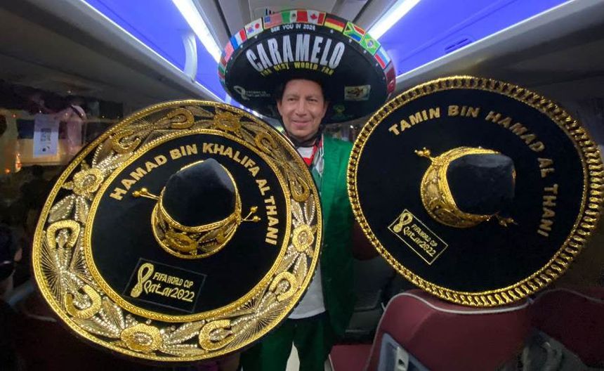 Caramelo, uno de los aficionados más populares de la Selección Nacional de México, dio a conocer que le quiso obsequiar un sombrero de charro bordado, al miembro de la familia real qatarí, Hamad Bin Khalifa Al Thani y a su hijo Tamin Bin Hamad Al Thani.
