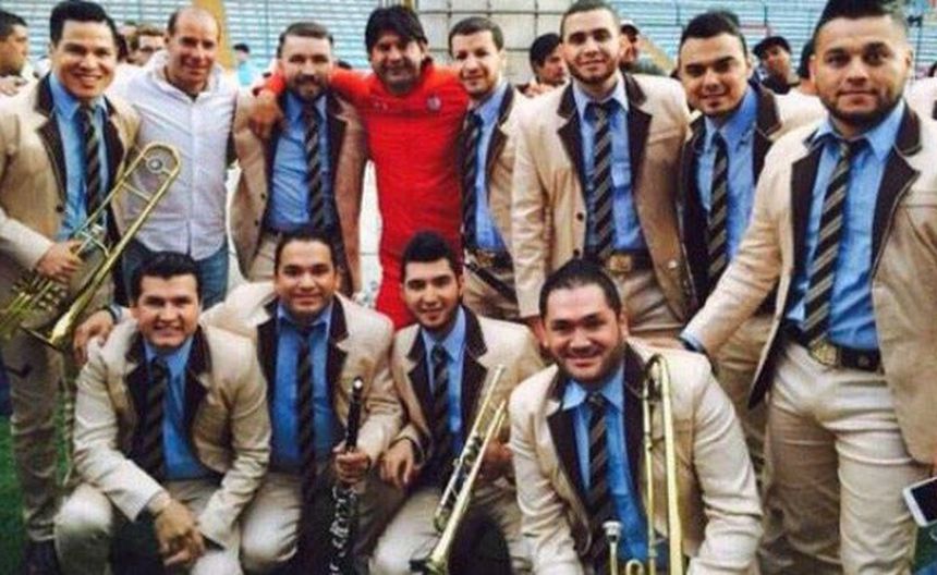 Además el timonel se fotografió con los integrantes del Recodo, a quienes les regaló una playera del conjunto escarlata autografiada.
