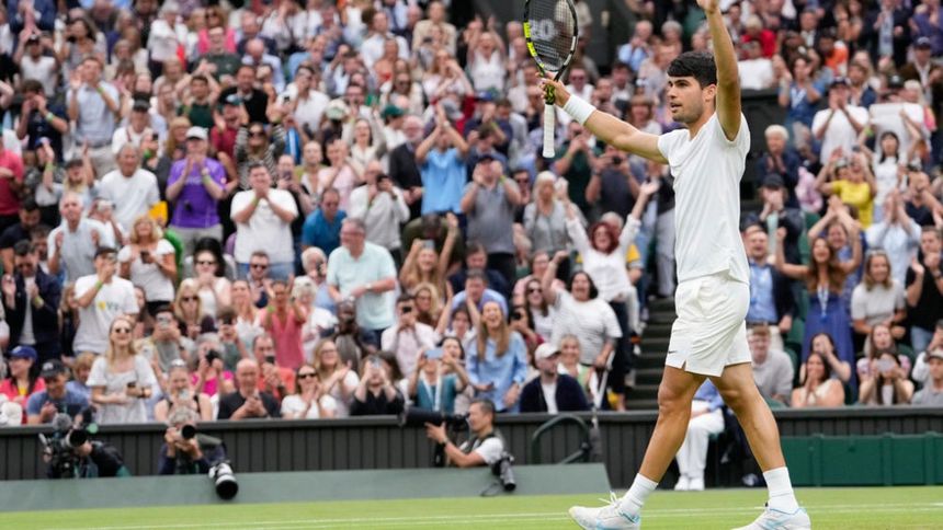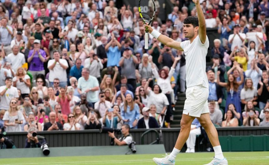 El campeón defensor Carlos Alcaraz remontó para eliminar a Frances Tiafoe 5-7, 6-2, 4-6, 7-6 (2), 6-2 para alcanzar la cuarta ronda de Wimbledon el viernes en un entretenido duelo entre dos amigos y que estuvo lleno de momentos increíbles y una serie de grandes disparos.